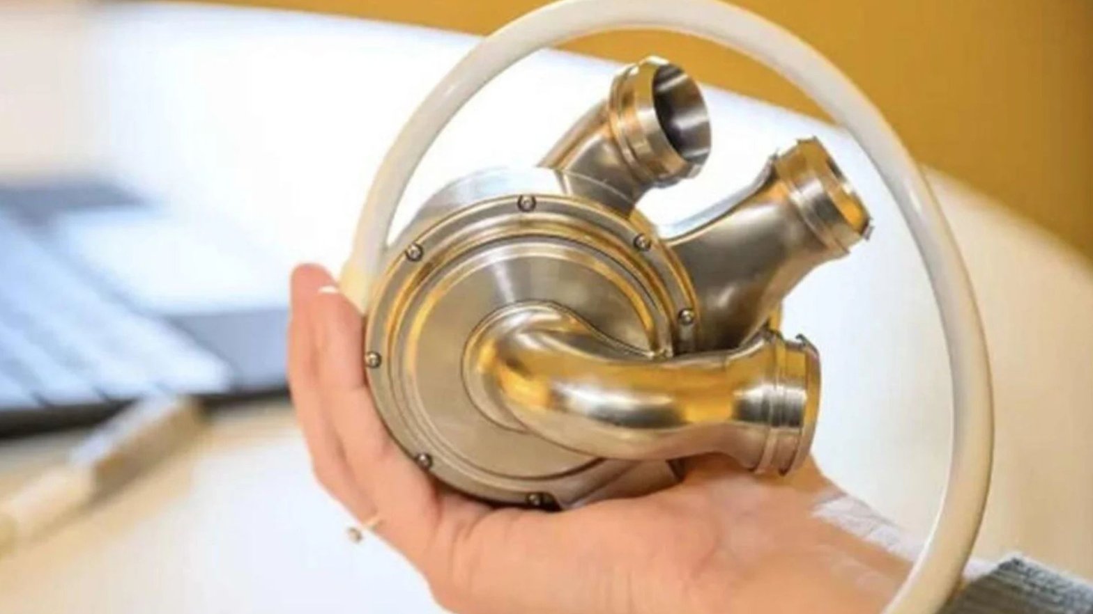 🔬 Fabriqué en titane, il ne possède ni valves ni roulements mécaniques susceptibles de s'user, assurant ainsi la circulation sanguine vers le corps et les poumons. Le bio-ingénieur australien de ce cœur en titane, Daniel Timms, l’a conçu suite au décès de son père, causé par une maladie cardiaque.
