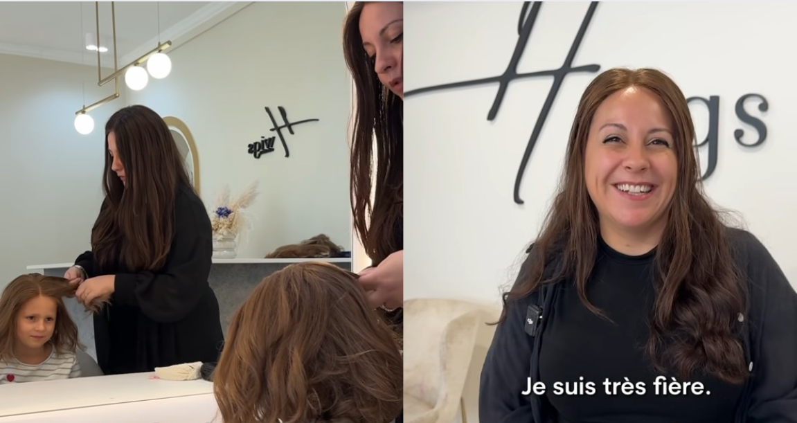 👧 Notre journaliste Alice Schneider a rencontré la jeune femme alors qu’elle faisait essayer sa nouvelle perruque à la petite Léana, 6 ans, atteinte d’un cancer depuis un an et demi. À cette occasion, elle a pu voir en direct la magie d’Hannah opérer, et le visage de cette enfant s’illuminer.