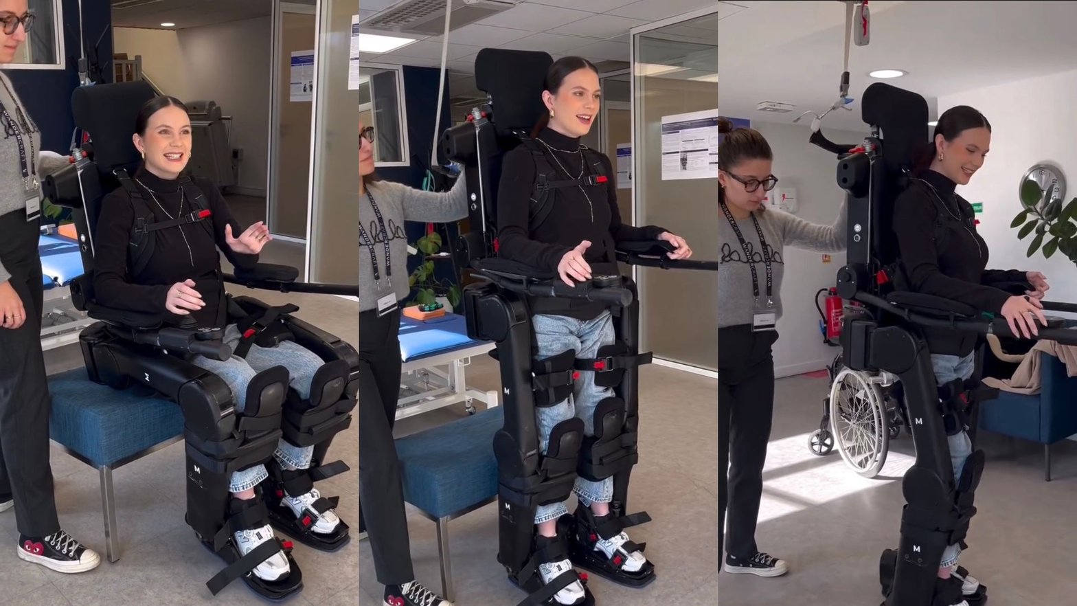 🚶♀️Récemment, elle a pu essayer cet appareil unique et retrouver les sensations de la marche. La jeune femme a passé une heure debout, une heure en mouvement, après deux années de fauteuil. Une simple marche est devenue extraordinaire.