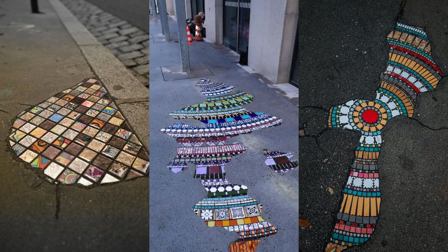 🎨 C’est une technique unique qui consiste à réparer les fissures et trous urbains avec des mosaïques colorées !