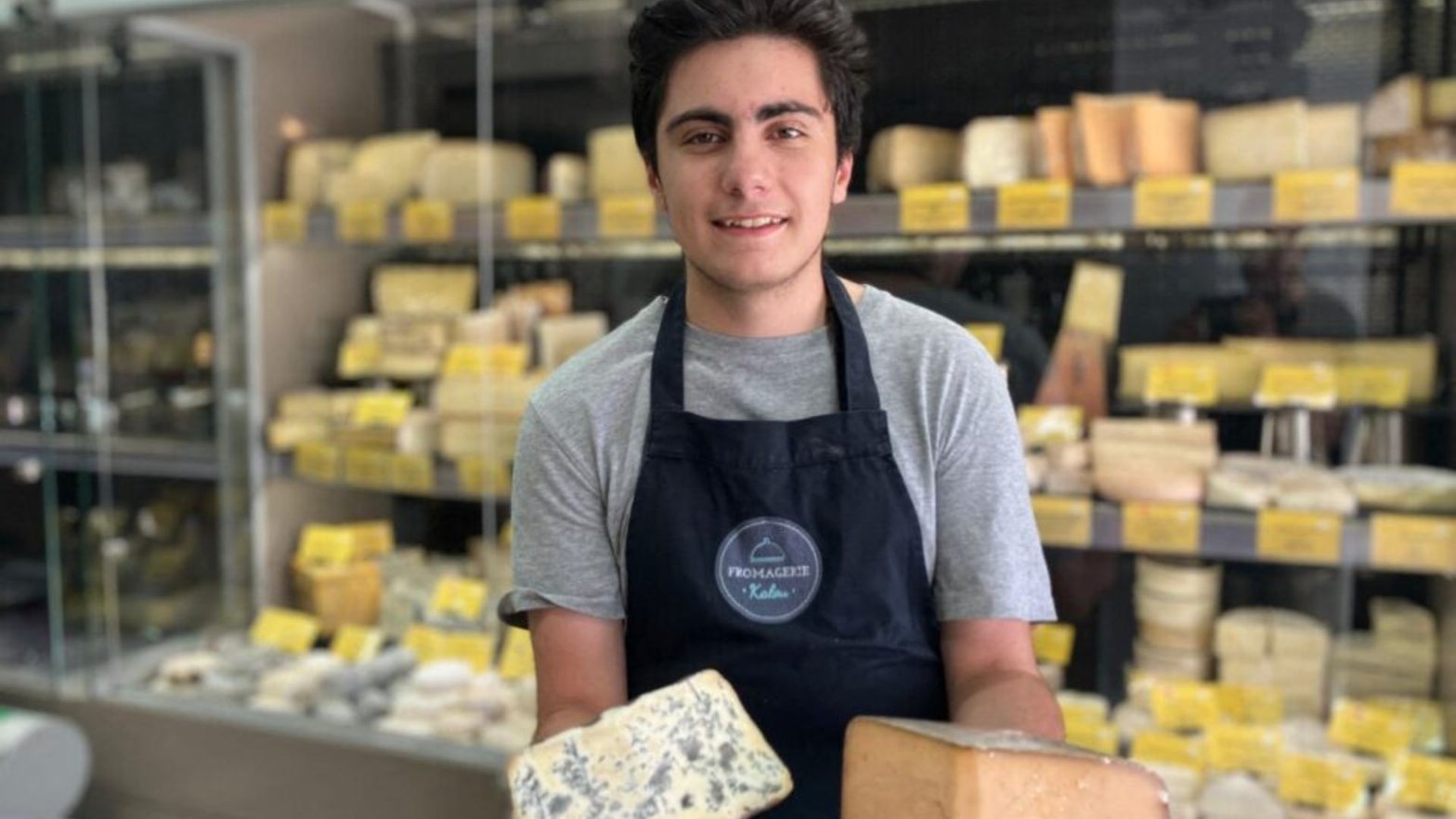 💪 Tout a commencé au collège, quand Matyss a poussé la porte de la fromagerie Kalou pour demander un stage. Sa passion du fromage, transmise par ses grands-parents au marché, ne l’a jamais quitté. Aujourd’hui, il y travaille et régale une clientèle fidèle et souvent admirative !