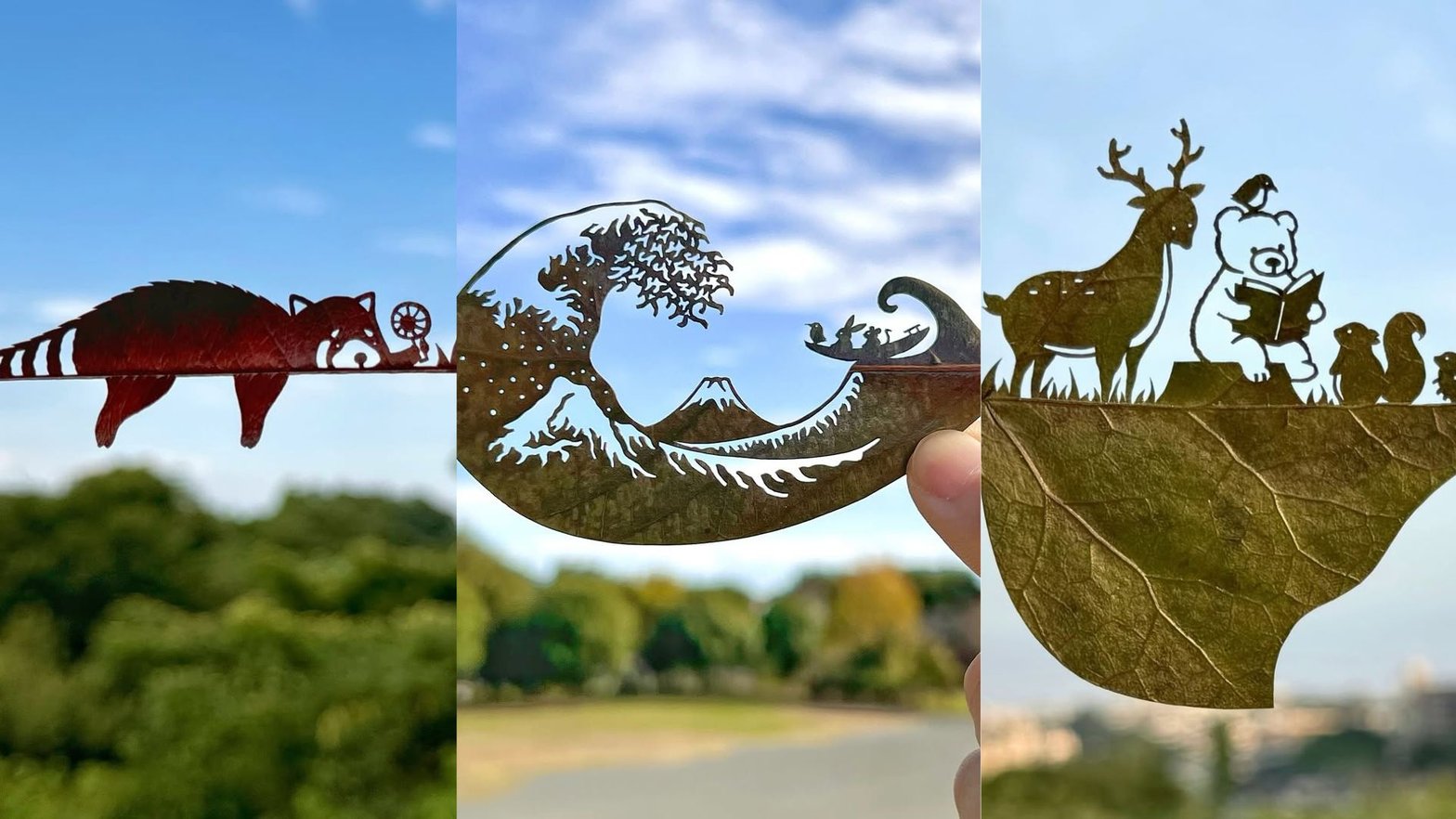 🏞️ Chaque feuille est choisie avec soin, puis sculptée à la main pour révéler des motifs incroyablement précis : animaux, objets du quotidien ou paysages !