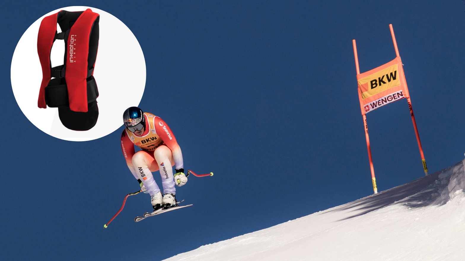 Ce skieur porte le gilet airbag lors dâune compĂ©tition. © In&Motion