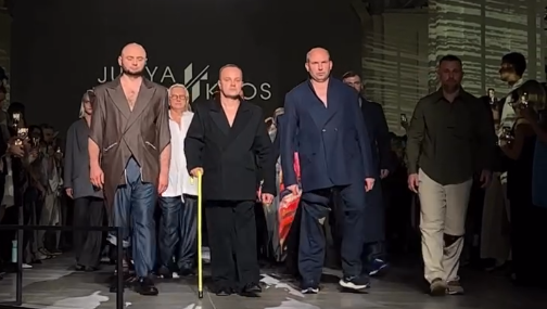 En clôture du défilé de Juliya Kros, la capitaine de l’armée ukrainienne Kristina Sanina, amputée des deux jambes, s’est avancée à son tour, aidée de deux mannequins. Sous une ovation générale du public, la rescapée munie de deux prothèses est apparue émue mais la tête haute, puissant symbole de sa résilience et de son courage, salués par l’ensemble du public.